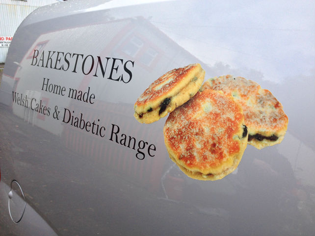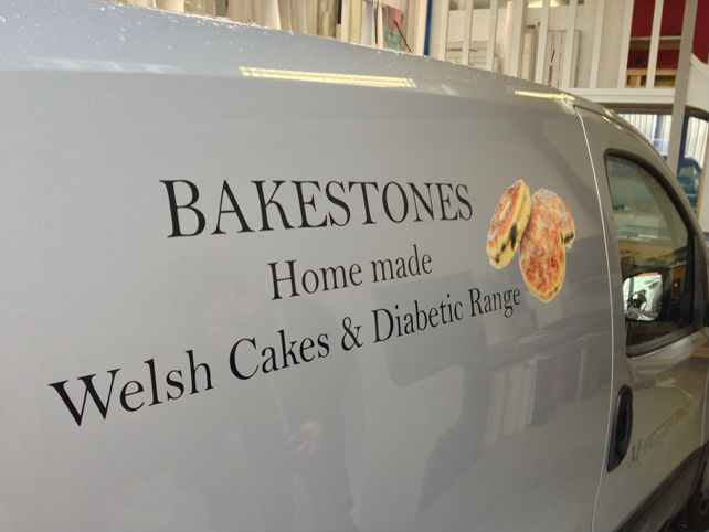 Our team fitted brand new graphics to the grey vehicle including a picture of Welsh cakes on the sides. If you are interested in branding your company vehicles give us a call on 01443 402525 for more information.