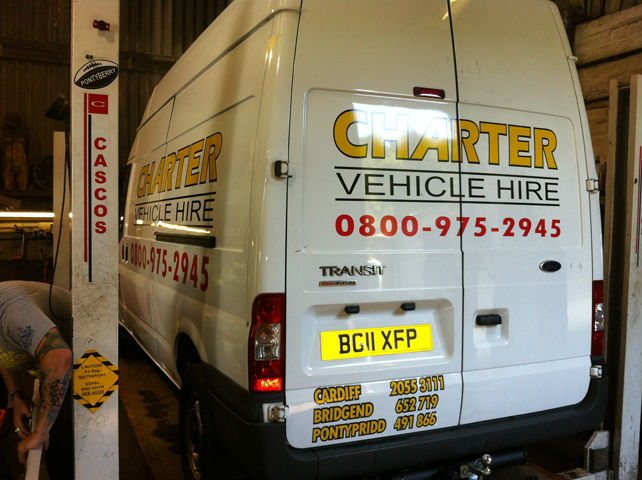 As one of the oldest established vehicle hire companies in South Wales, Charter Vehicle Hire operates nearly 250 daily rental vehicles and keeps our Customised Signs team busy branding every single one of them. It is important for the branding to work across a multitude of different vehicles including their existing and newest fleet as well as on their site signage, clothes and literature.