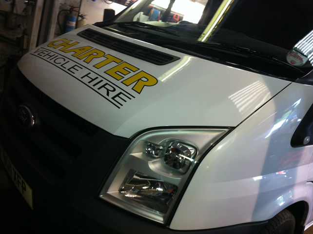 All of the branding for Charter Vehicle Hire consists of coloured superior quality calendered signmaking cut vinyl Metamark 4 Series at the Customised Signs head office in Pontypridd, South Wales. The Metamark 4 Series, 140gsm Kraft Liner, features a 70 micron monomeric soft handle face film which ensures 4 years of durability for our customers.