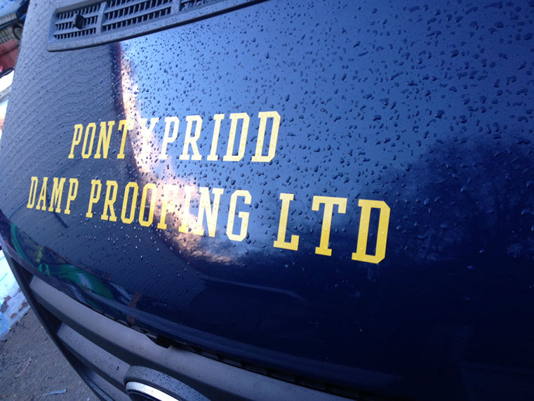 Pontypridd Damp Proofing’s van was booked in to the Customised Signs workshop and the vehicle graphics were expertly applied to the font, back and side panels of the van by our in house Fitting Team.