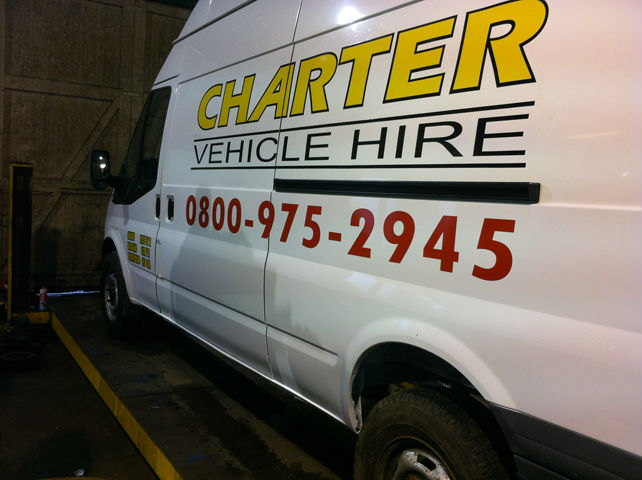 All of the branding for Charter Vehicle Hire consists of coloured superior quality calendered signmaking cut vinyl Metamark 4 Series at the Customised Signs head office in Pontypridd, South Wales. The Metamark 4 Series, 140gsm Kraft Liner, features a 70 micron monomeric soft handle face film which ensures 4 years of durability for our customers.