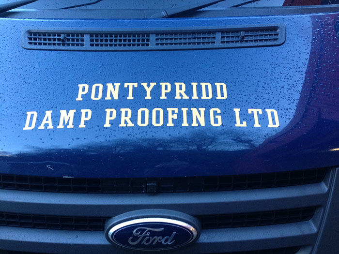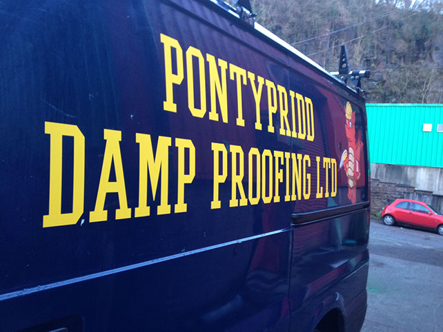 Pontypridd Damp Proofing’s van was booked in to the Customised Signs workshop and the vehicle graphics were expertly applied to the font, back and side panels of the van by our in house Fitting Team.